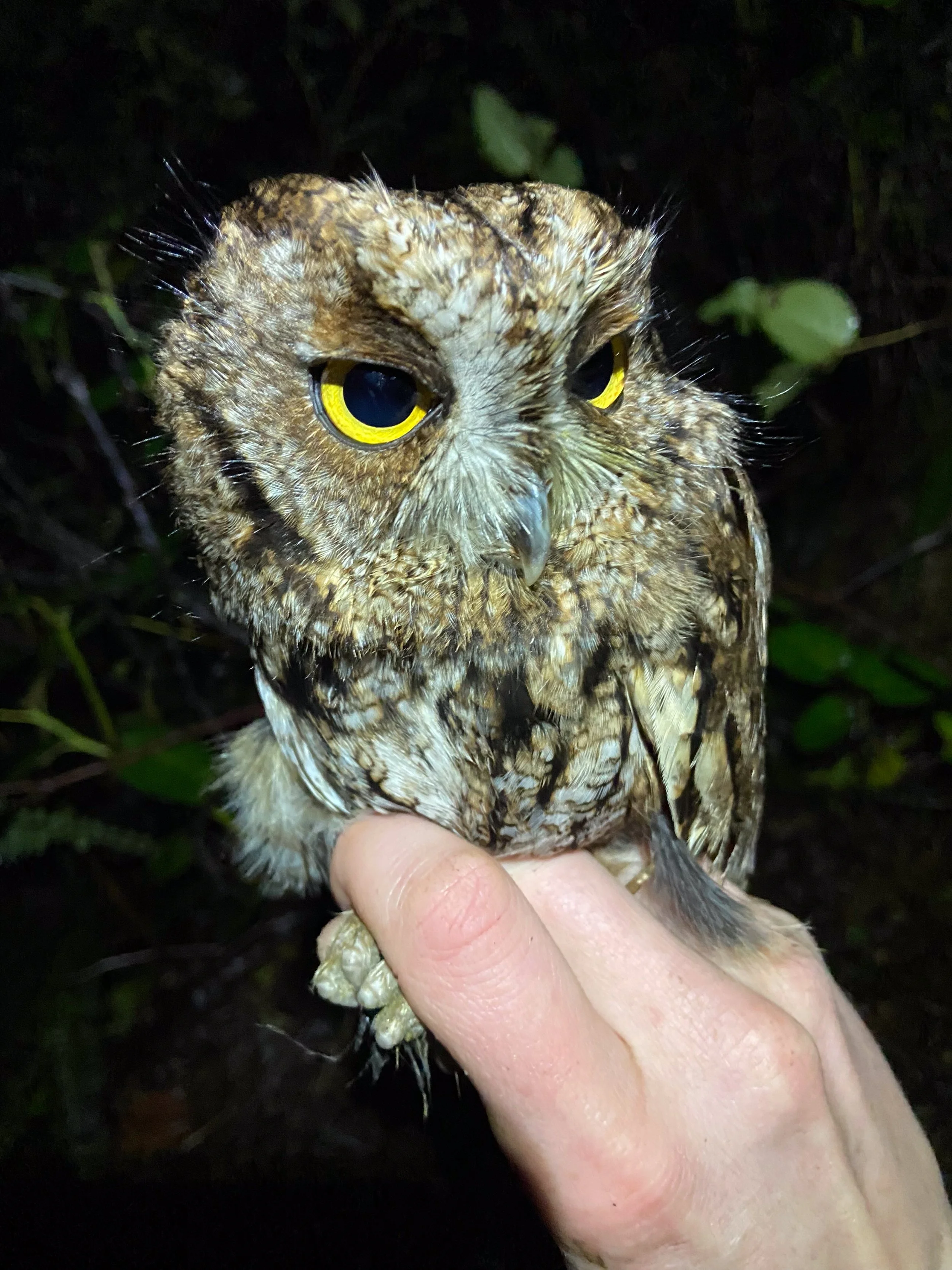 The presence of WESOkes was almost immediately verified night one at Rassier Point. Audio playback lures attracted a teasing male, who spent all sorts of effort taunting us in the night but refusing to fly into the net. Ultimately, no tag was deployed that night, but we were left with a question. Why here, on the east of the island, and not there, in the west? Hypothesis generation is one of the most exciting parts of field research and I, at least, enjoyed playing with ways to test these hypotheses. However, given that we hadn’t yet caught a single owl, we still had a lot of work to do. You could say week one ended in failure, but this would be ignoring the valuable information we learned. I believe we succeeded precisely because expectations were defied. We began to crack the puzzle of what is going on with these birds and, given how little we know, that is as big a victory as you can expect.